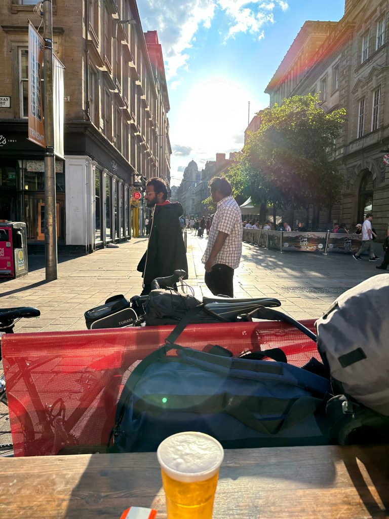 When we got to Glasgow we changed stations and had a 2 hour wait to board the Caledonian sleeper at Central station. We stopped off in Buchanan st and enjoyed a lovely cool couple of beers on the street as the sun went down!