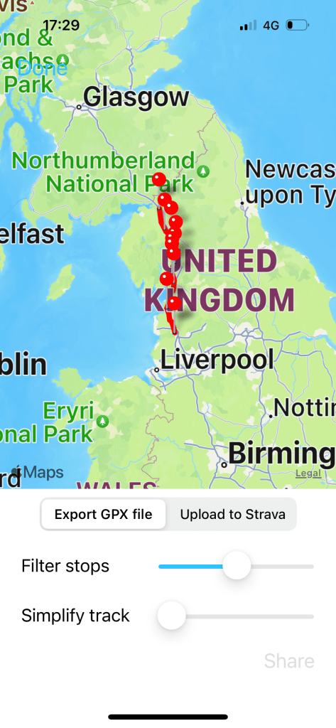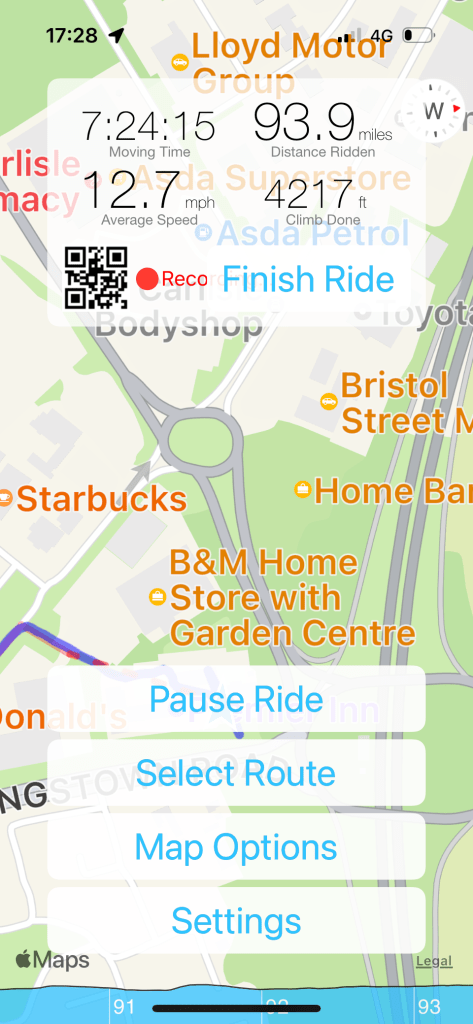 We took the road along to Wigton , before turning back to Carlisle and the roads were wide and long! Certainly seemed to be Roman roads and the straights were sometimes a couple of miles long. Given the mileage today, the cycling was swift. The total ascent was over 4000ft but most of it was on Shap. Undulating roads today were easily navigated with the lower traffic volumes.