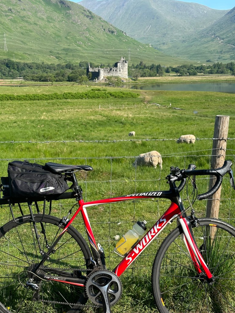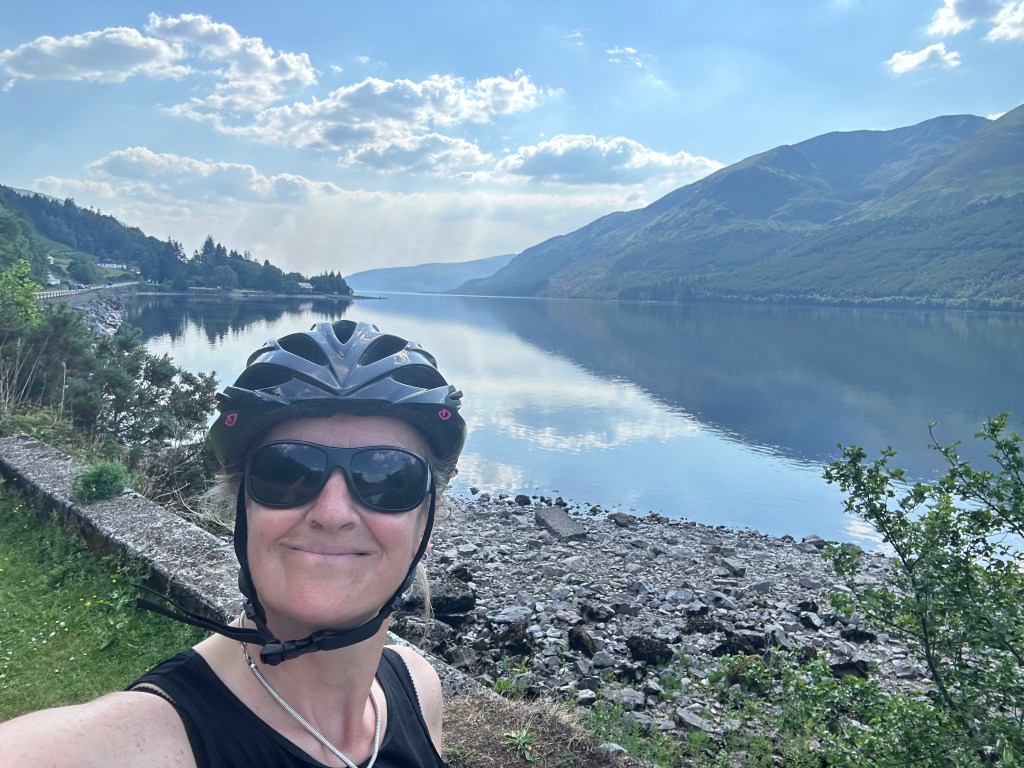 The descent and run down to Loch Awe was beautiful, the day was calm and hot and the loch looked shiny! Our first wee water stop was at Kilchurn Castle after 15 miles.