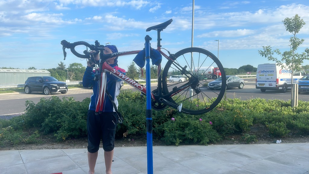 I had a pint of water and a pint of lager as I had run out of water and was totally parched! It didn’t help! A quick wash and dinner at 8pm. The plan is to try and get my bike to a bike shop or Halfords in the morning before we leave at 9.30am tomorrow to head to the end! I tried bribing the staff in the Premier Inn for some local insider info and help but no joy!